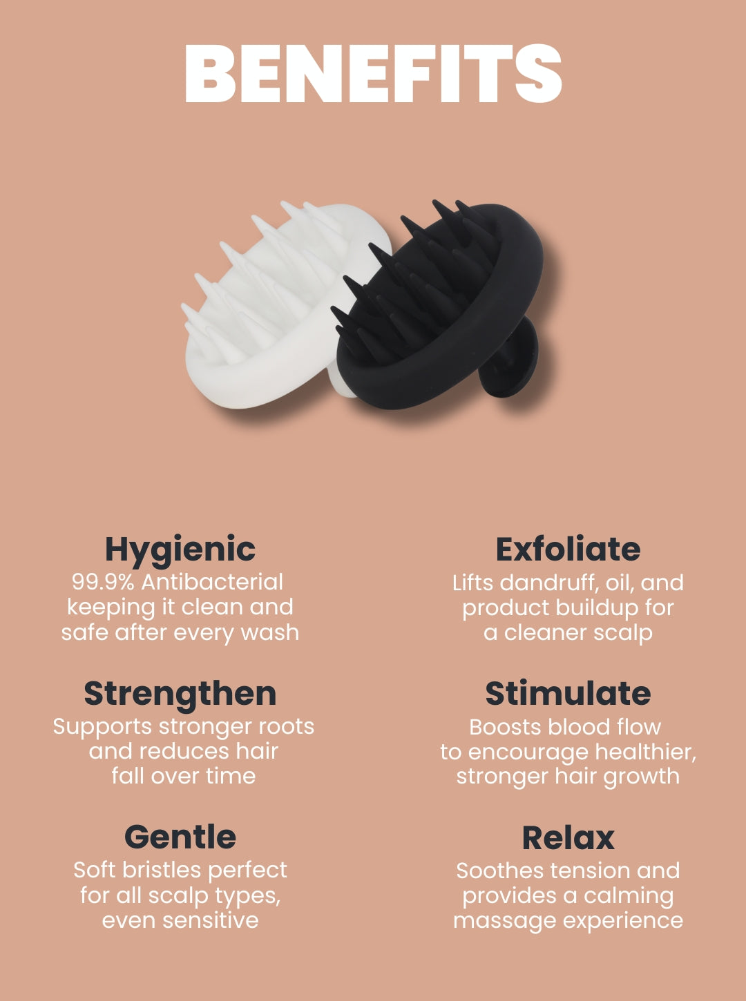 Together, they boost hair health. The shampoo nourishes and strengthens, while the scalp massager improves blood circulation, reduces buildup, and supports stronger roots