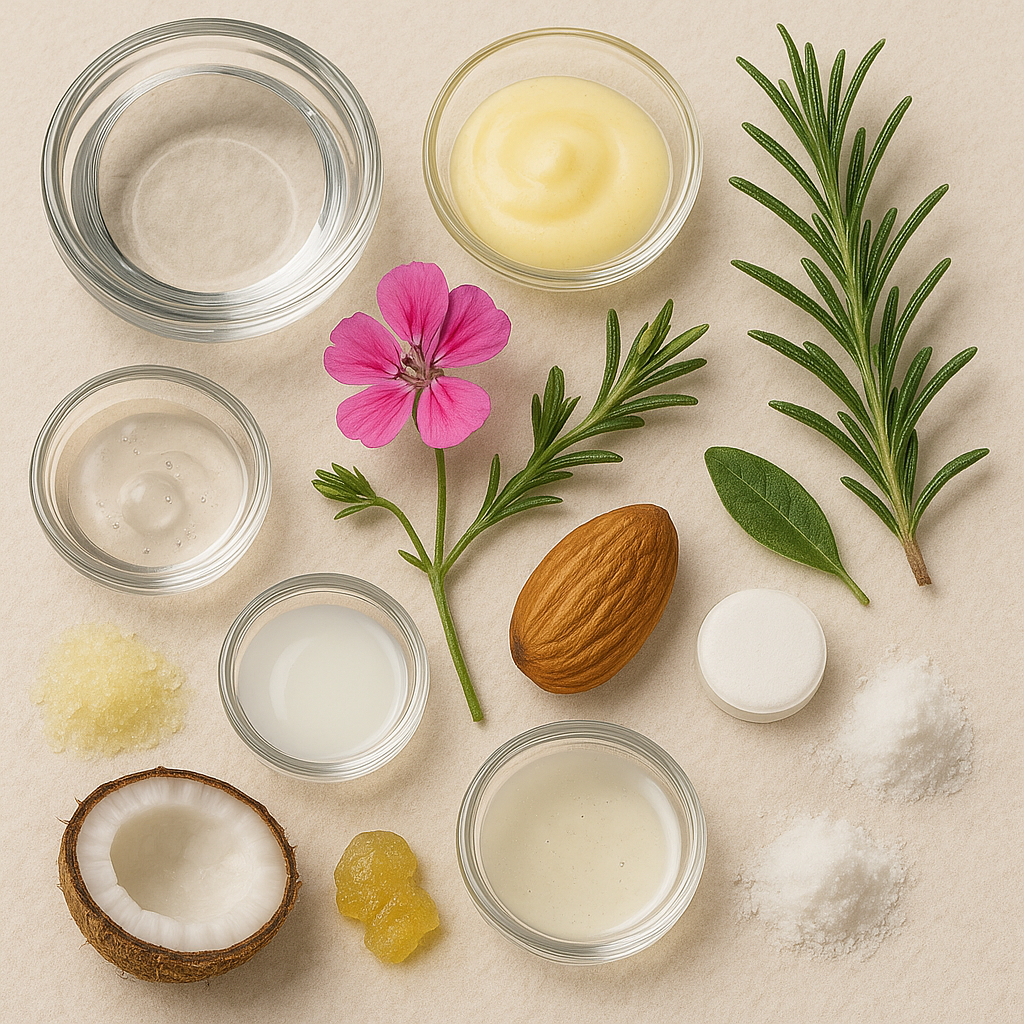 Formulated with organic aloe vera, glycerin, provitamin B5, geranium oil, tea tree oil, coconut oil, almond oil, salicylic acid, lactic acid, citric acid, PEG-40, glyceryl oleate, xanthan gum, and phenoxyethanol. Sulfate and paraben free for a gentle, skin-loving cleanse